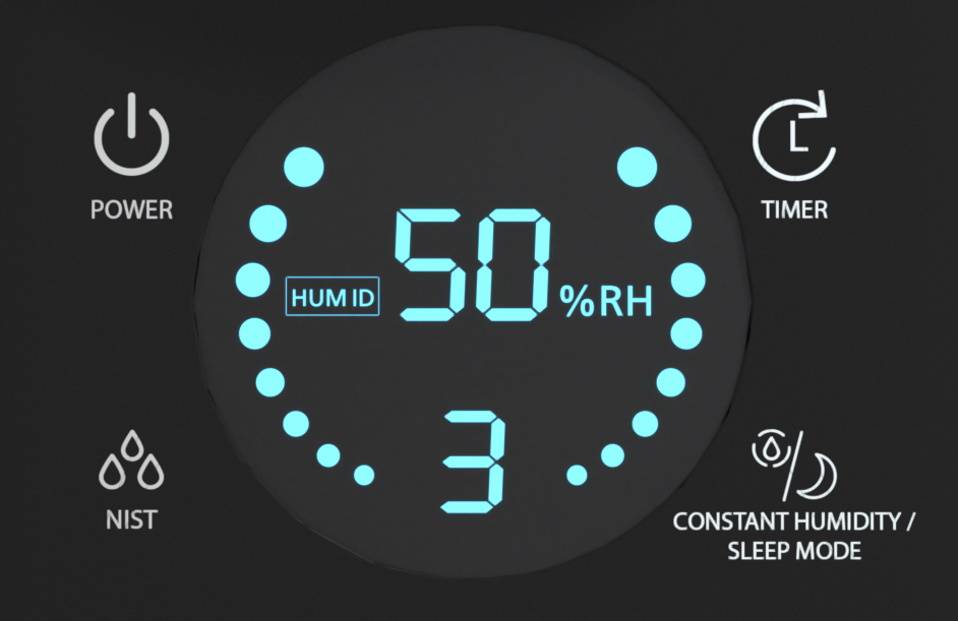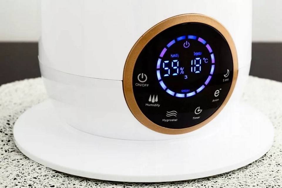 Тип управления – сенсорная панель. Информацию о режиме и показателях влажности устройство передает на цифровой экран. Встроенный индикатор уровня жидкости отключит оборудование с пустым резервуаром.