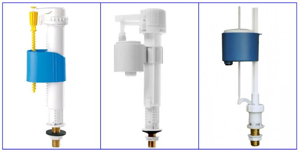 Впускной клапан для унитаза подразделяется на отдельные виды в зависимости от следующих признаков: