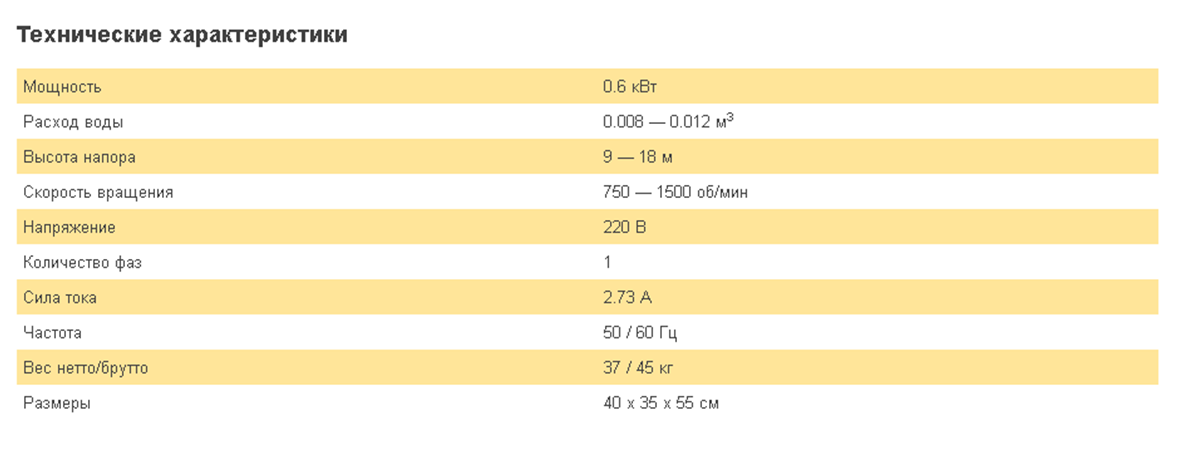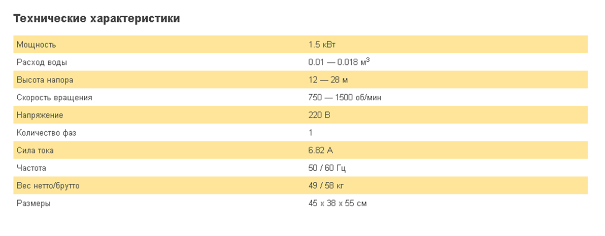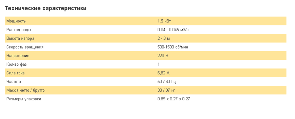 | Мощность, кВт | Расход, л/с | Высота, м | Масса, кг | Цена, т.р. | ||