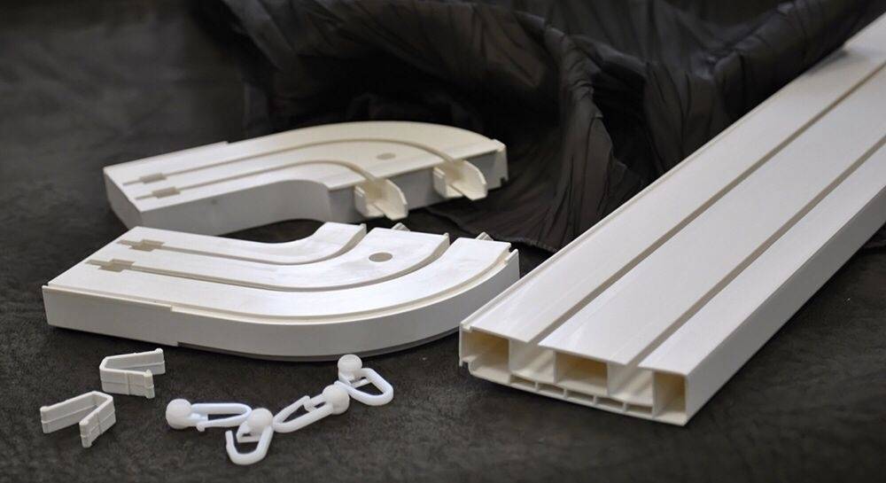 Универсальные карнизы подходят только для встроенного полога. В остальных случаях систему крепления придется изготавливать по индивидуальному эскизу. Например, для фиксации изделия применяются специальные перекладины, тросы и крюки.