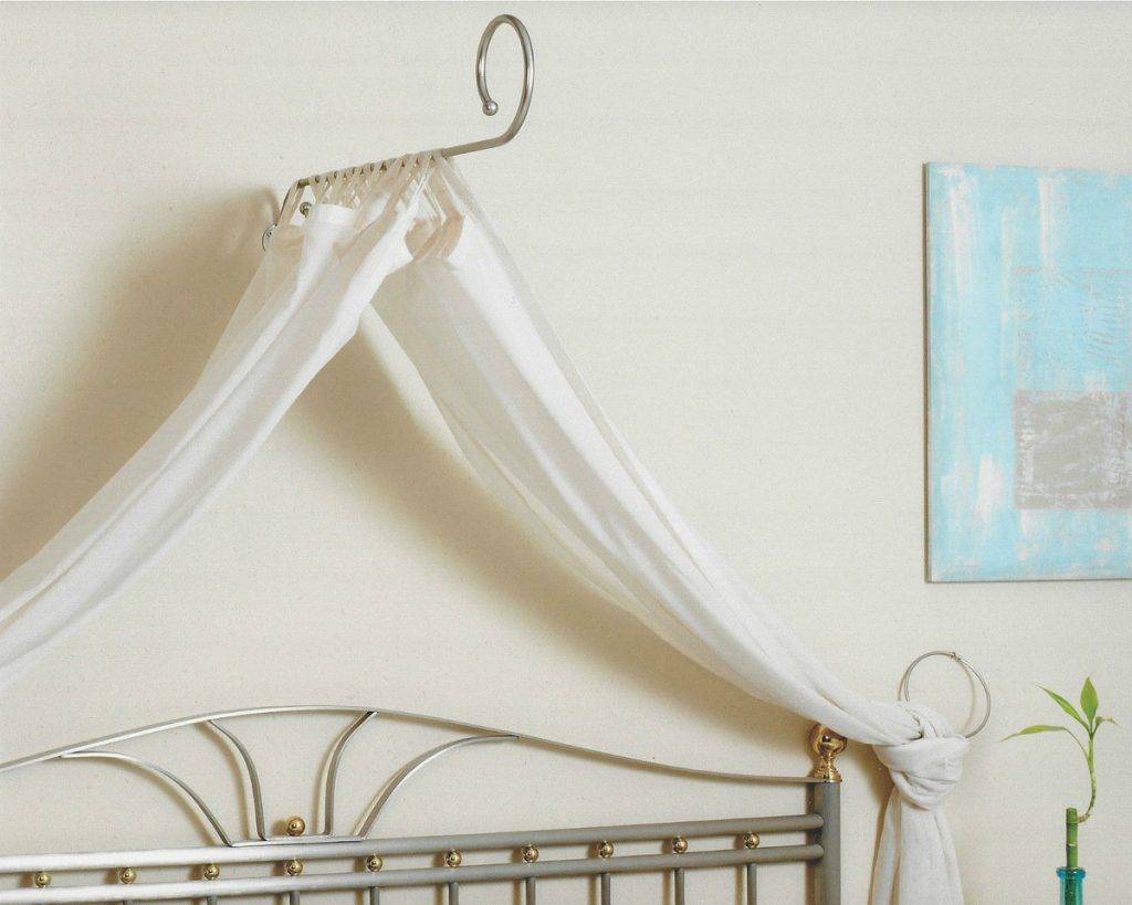 Еще 1 метод стационарного устройства — это расположение навеса на стене комнаты. В этом случае крепление для балдахина имеет также декоративную роль, точно вписываясь в стиль комнаты. После того как надежно будет установлено кованое изделие, на него останется только закрепить балдахин.