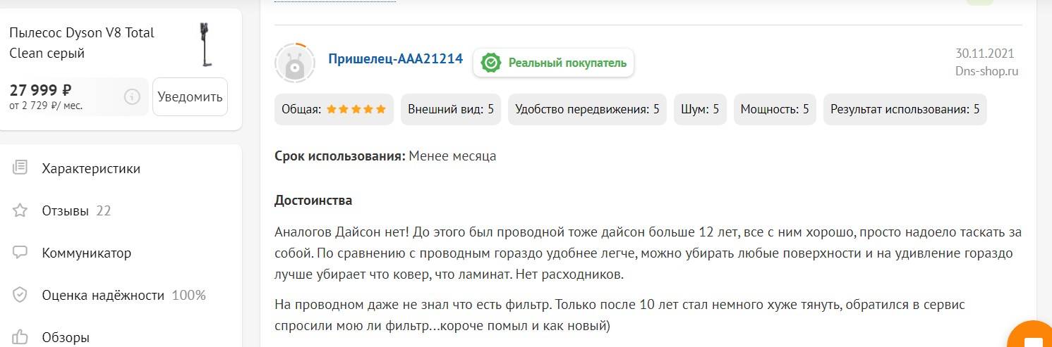Стоимость беспроводного пылесоса Dyson V8 Absolute в фирменном магазине составляет 47 990 рублей. На пылесосы Dyson в официальной поставке предоставляется гарантия — 2 года.