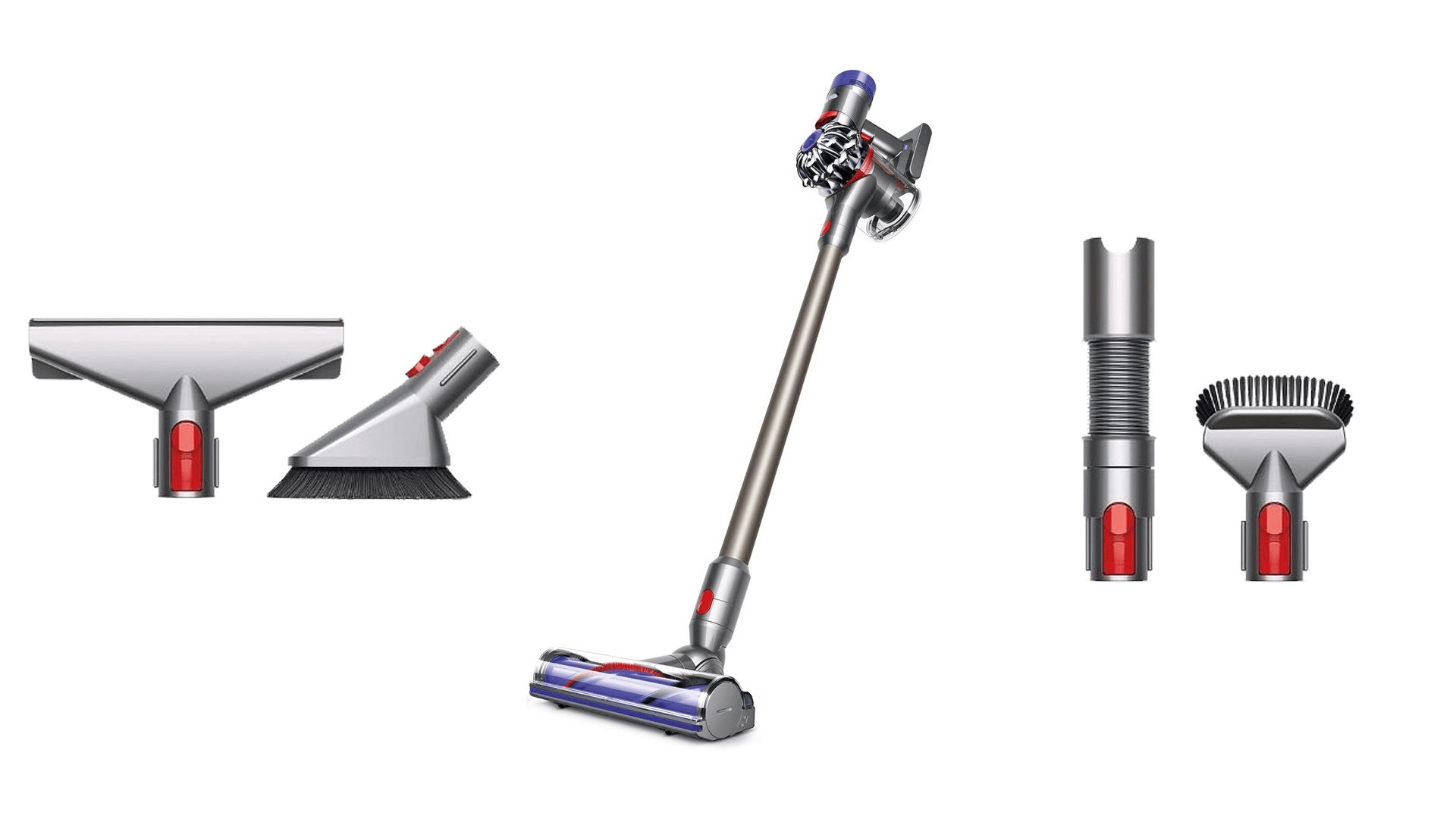 Также у этих моделей есть три дополнительные насадки по сравнению с Dyson V8 Motorhead. Это мини-электрощетка для мягкой мебели и уборки шерсти домашних животных, насадка с мягким валиком и щетка с мягкой щетиной. Плюс у чуть более дорогой модели Dyson V8 Total Clean есть еще одна дополнительная насадка – гибкая щелевая насадка Flexi. Ее удобно использовать для уборки в узких труднодоступных местах, так как она длинная и гибкая. Это единственное отличие между двумя моделями.