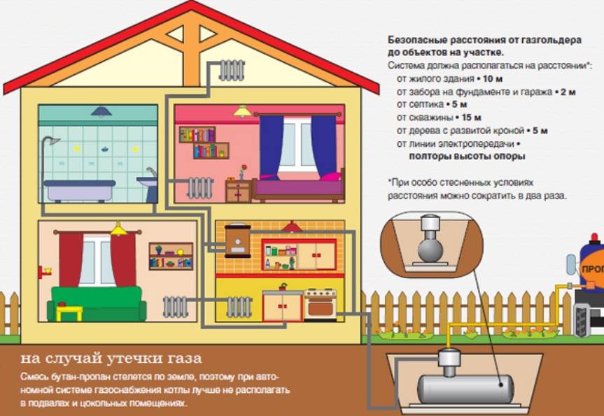 В частном доме источником энергии может быть магистральный газ, пропан-бутановая смесь из газгольдера и электричество: