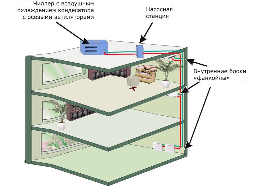 По своей конструкции системы «чиллер-фанкойл» разделяются на следующие виды: