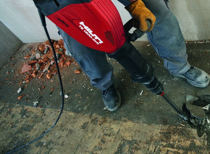 Следует отметить, что выполняя удаление стяжки пола ударным способом, обычно используется электроинструмент (перфоратор, отбойный молоток), ввиду чего работы необходимо производить с перерывами, достаточными для остывания электрической оснастки. Обычно после 10 минутной работы бывает достаточно 5 минутного перерыва.