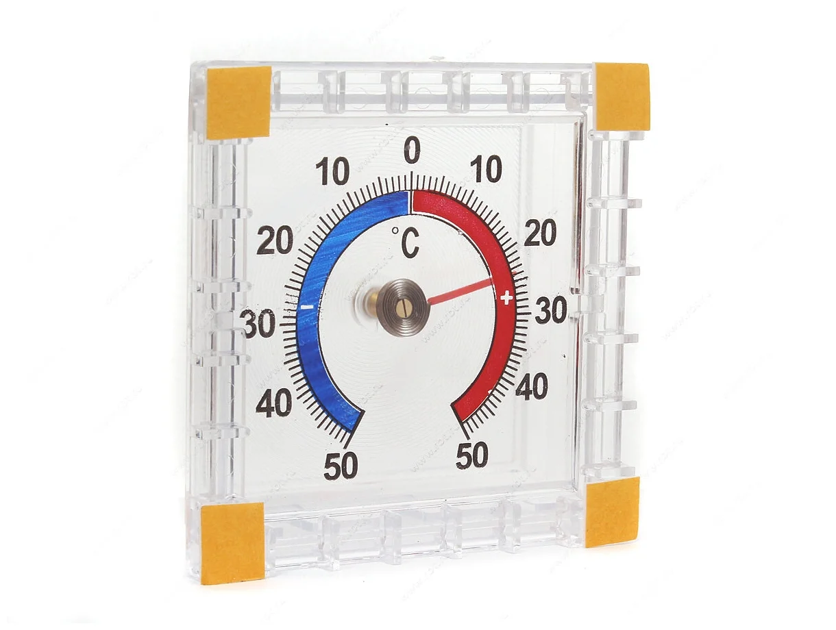 - По возможности следует выдерживать наибольшее расстояние от стены дома до термометра, к примеру, если он приклеивается к стеклу, лучше отнести его подальше от бокового откоса и расположить по центру оконного блока.