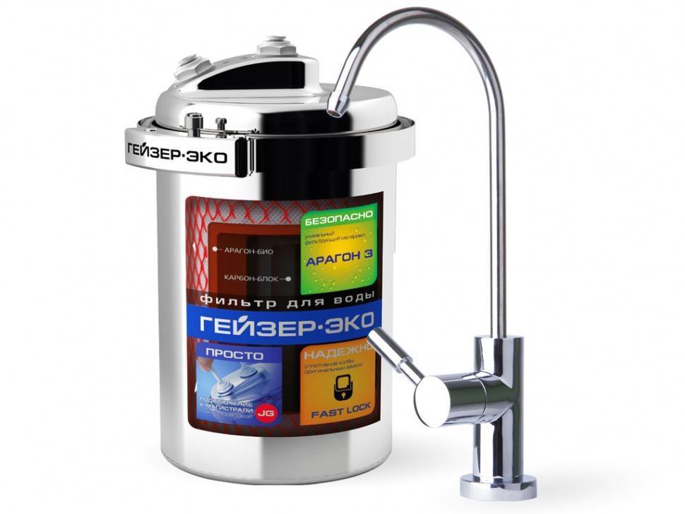 Фильтр высокой производительности. Изготовлен из качественных материалов, монтируется под мойкой. Конструкция надежная и очень компактная. Модули очистки, расположены внутри, что делает Гейзер, привлекательным внешне.