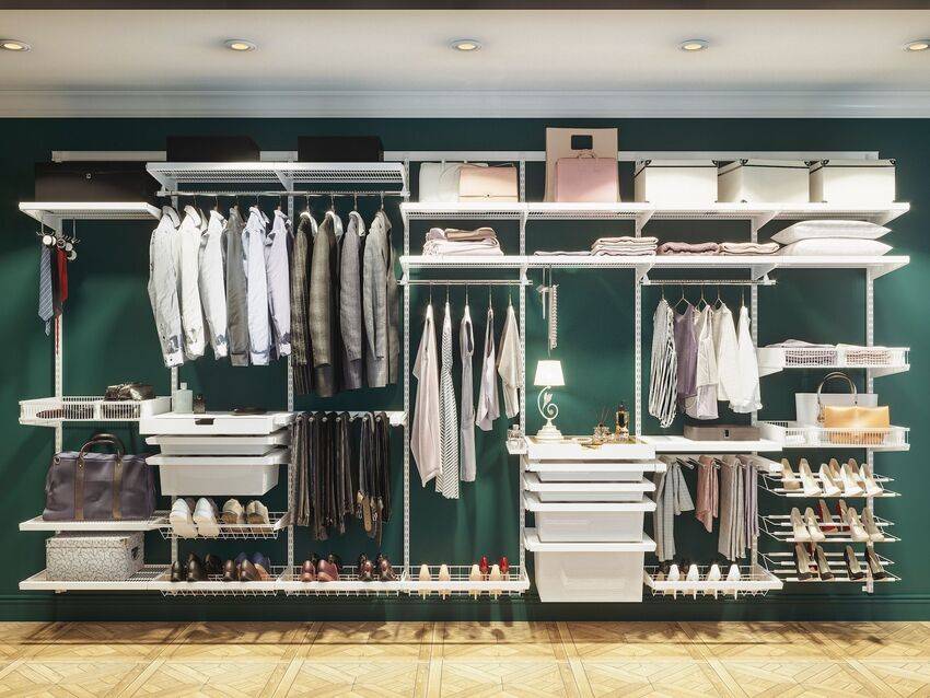 Теперь вы точно знаете, сколько полочек, ящиков и штанг понадобится. Выберите тип системы хранения: угловая гардеробная, П-образная или линейная. Если места действительно мало, вероятнее, подойдут первый и третий варианты.