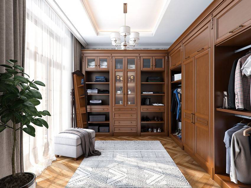 - Гардеробная комната закрытого типа, требует оборудования дополнительным освещением;