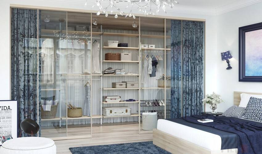 Но если в квартире нет свободного помещения, то под систему хранения можно выделить часть спальни. Отделить пространство можно гипсокартонной или раздвижной перегородкой.