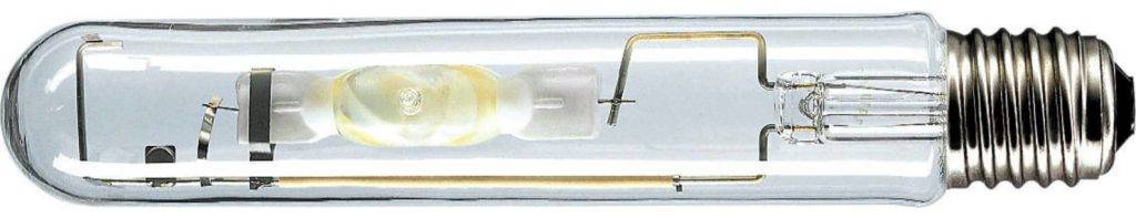 Металлогалогенные лампы — это ртутные лампы высокого давления, в которых используются добавки из йодидов металлов, в том числе редкоземельных, а также сложные соединения цезия и галогенида олова. Все эти добавки значительно улучшают световую отдачу и характеристики цветопередачи ламп при ртутном разряде.