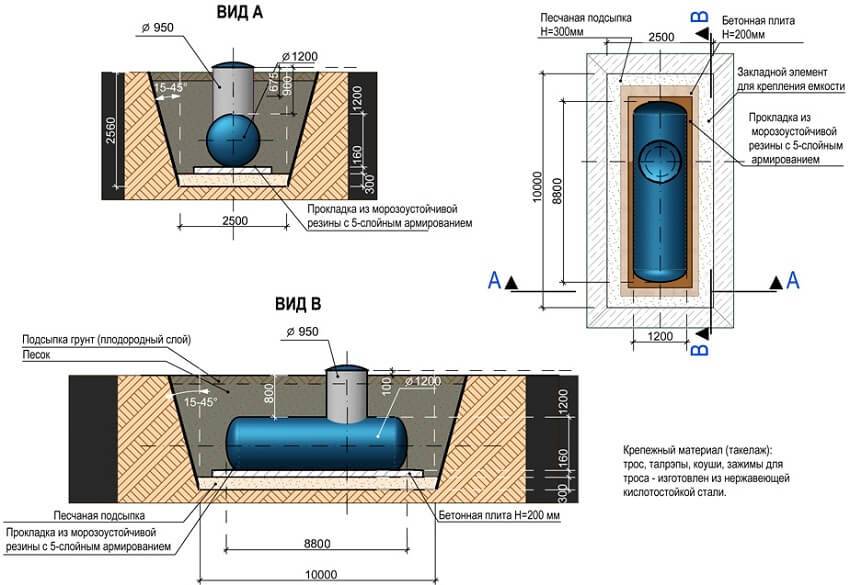 Стандартные параметры, которые должны применяться для установки газгольдеров бытового назначения. Возможен некоторый отход от нормативов в сторону увеличения, но незначительный. Параметры напрямую зависят от размеров резервуаров