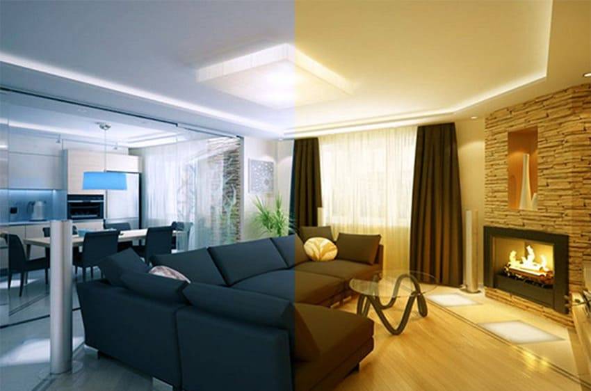 Выбирая холодный или теплый свет, ориентируйтесь на то, что светодиодные изделия для интерьера предлагаются в диапазоне от теплого белого света и нейтрального до белого дневного.