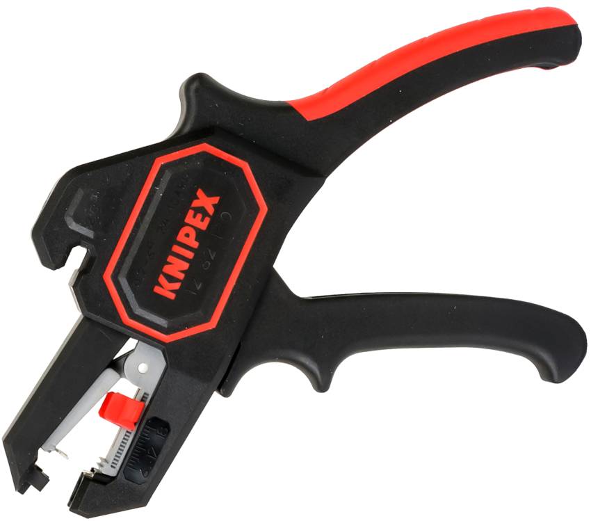 Заслуживает внимания инструмент для снятия изоляции Knipex KN 1262180, который может быть использован для одножильных, многожильных и тонких проводов сечением 0,2-6 мм². При удалении оплетки инструмент автоматически подстраивается под разный размер кабеля, что исключает вероятность повреждения целостности жил. Благодаря особой конструкции головки, которая имеет удлиненное исполнение, можно работать с инструментом в труднодоступных местах.
