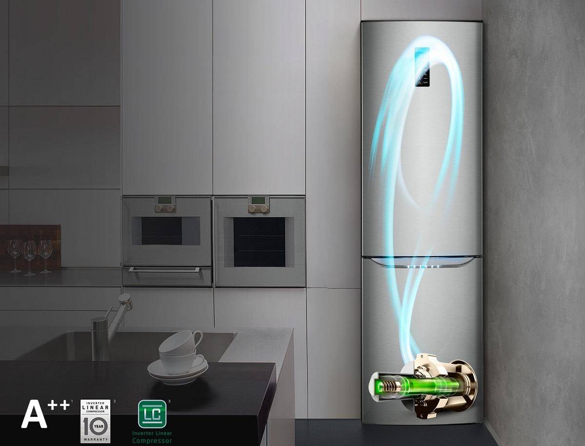 - Инверторные холодильники издают меньше шума при работе. Только в процессе разгона устройства при первом включении, вы можете услышать сильное гудение. Характерные для линейной системы щелчки здесь полностью отсутствуют.