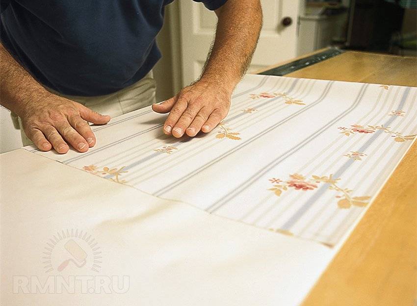 Рулоны без дополнительного орнамента просто раскатываются заданной стороной и клеятся, чтобы предотвратить смещение.