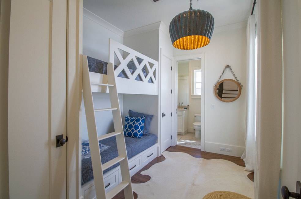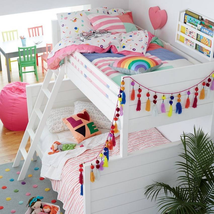Яркий декор делает дизайн двухъярусной кровати по-настоящему уютным