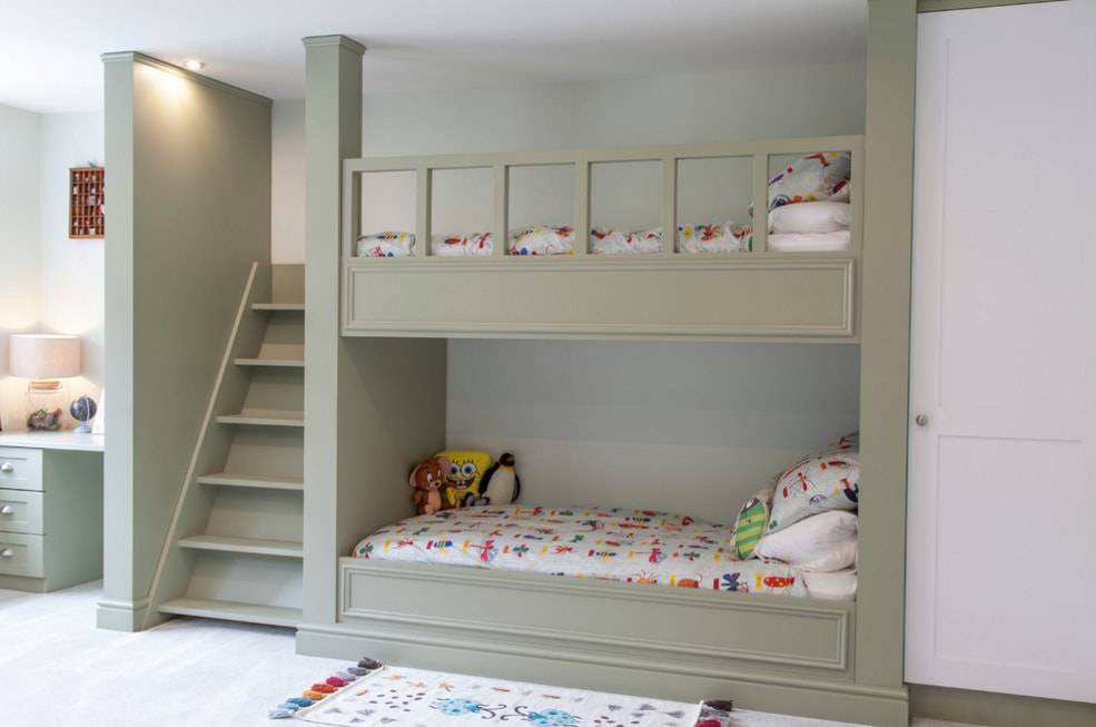 Кровать для двоих детей с удобными ящиками значительно экономит пространство.