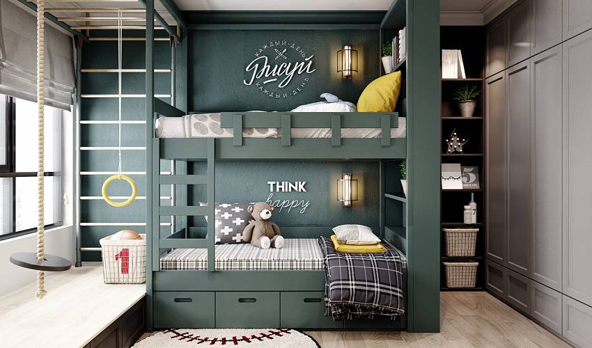 Детская комната должна одновременно совмещать в себе уют, функциональность и безопасность. Особенно данные требования актуальны, когда в ней проживают несколько детей. Важным моментом организации пространства детской является сохранение достаточного места для занятия активными играми.