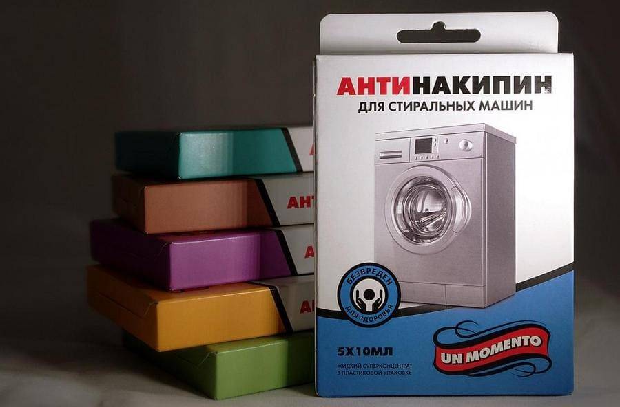 В магазинах продаются химические составы для удаления накипи, самым известным из который является «Антинакипин». В его состав входят кислоты, способные растворять накипь. Средство насыпают в барабан, убедившись в отсутствии белья, и включают режим стирки. Препарат достаточно эффективен и недорог. Важным моментом является точное соблюдение дозировки так, как излишняя концентрация средства приведет в негодность резиновые прокладки и шланги.