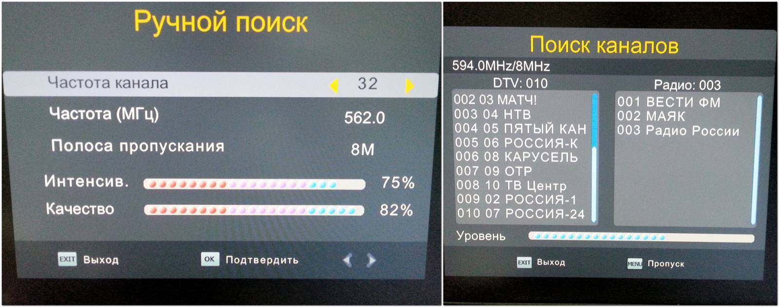 - Далее уже с помощью пульта от ресивера производится настройка каналов.