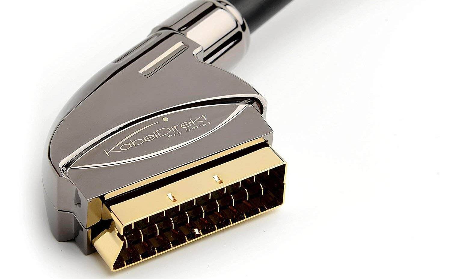 Этим интерфейсом преимущественно оснащены компактные тюнеры. По техническим характеристикам разъём ничем не уступает «тюльпанам». Настроить подключение можно с помощью кабеля RCA при условии наличия переходника на SCART. На телевизорах порт встречается редко, преимущественно им оборудованы старые модели.