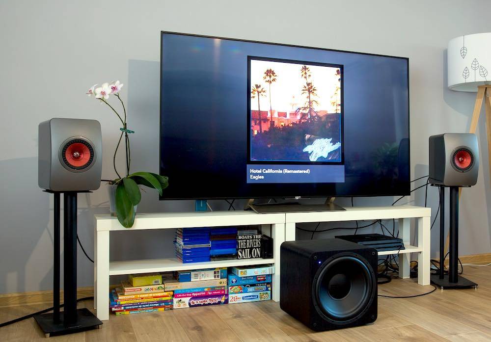 Также они требуют дополнительного питания – розетки. Перед тем, как подключить колонки к телевизору LG или Samsung, нужно удостовериться, что на панели устройства есть соответствующие выходы. Добиться приличного звучания помогут усилитель звука и система регулировки громкости.