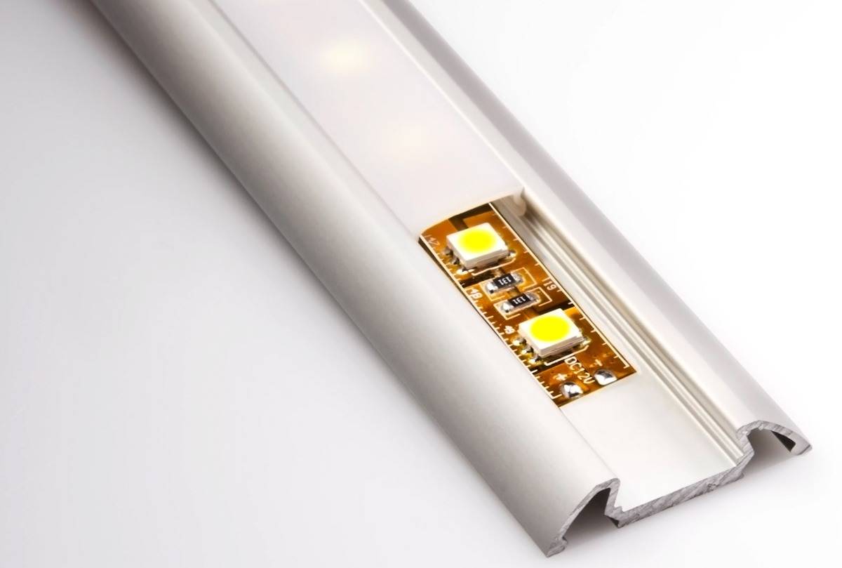 - Монтируйте ленту на специальный профиль из алюминия или пластика, он выполнит роль теплоотвода и снизит риск быстрого перегорания.