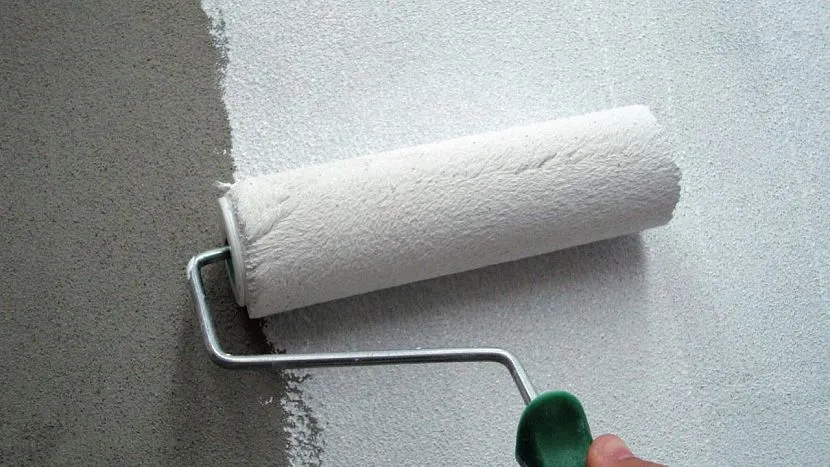 Если поверхность хорошо впитывает влагу, то ее покрывают грунтовкой. Также грунтовка повышает адгезию бетонных стен.