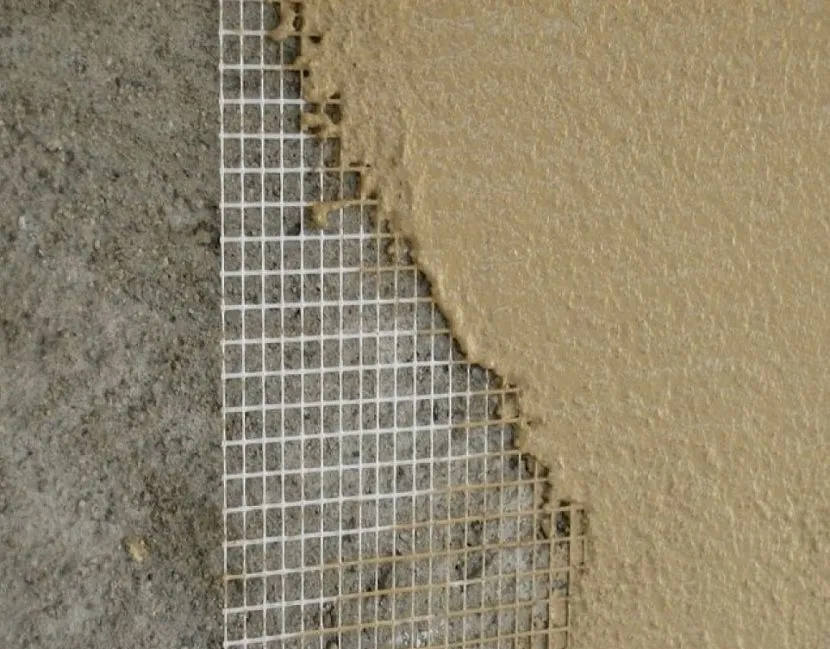 - После высыхания на стыки и углы наклеивают стекловолокнистую сетку, которая предотвратит растрескивание.