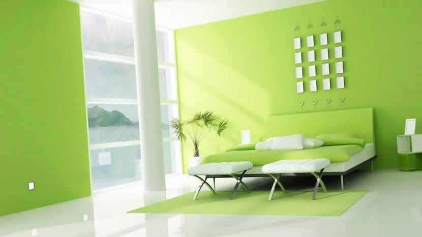 Однотонные салатовые стены в спальне