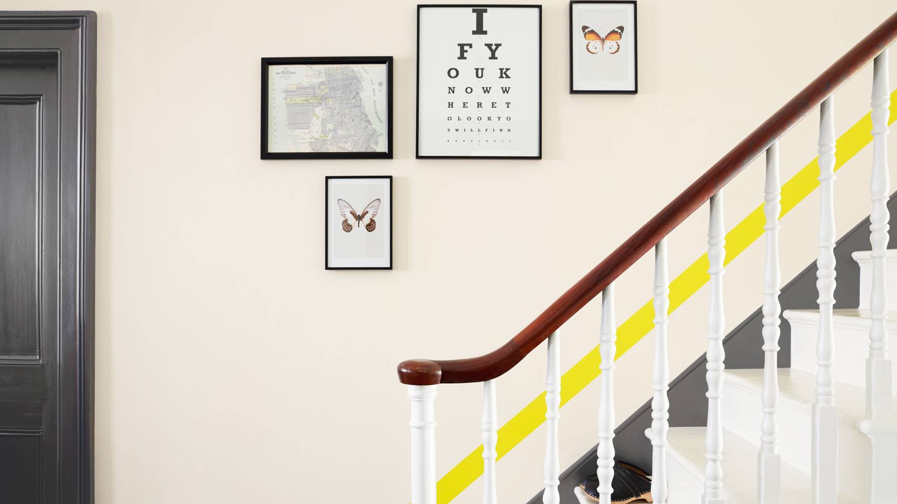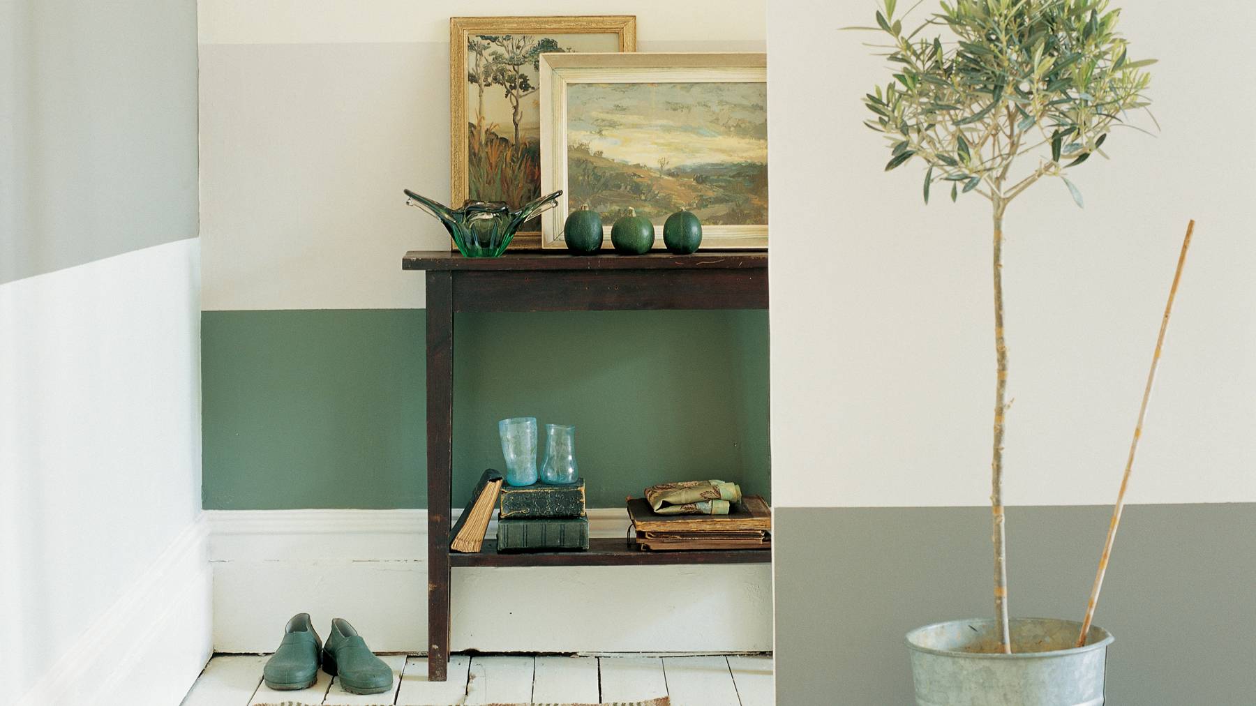 Сместите фокус на стены, используя самые разные формы. Например, горизонтальные полосы можно нарисовать на любой стене. Правильно подобрав цвет, ваша прихожая преобразится.