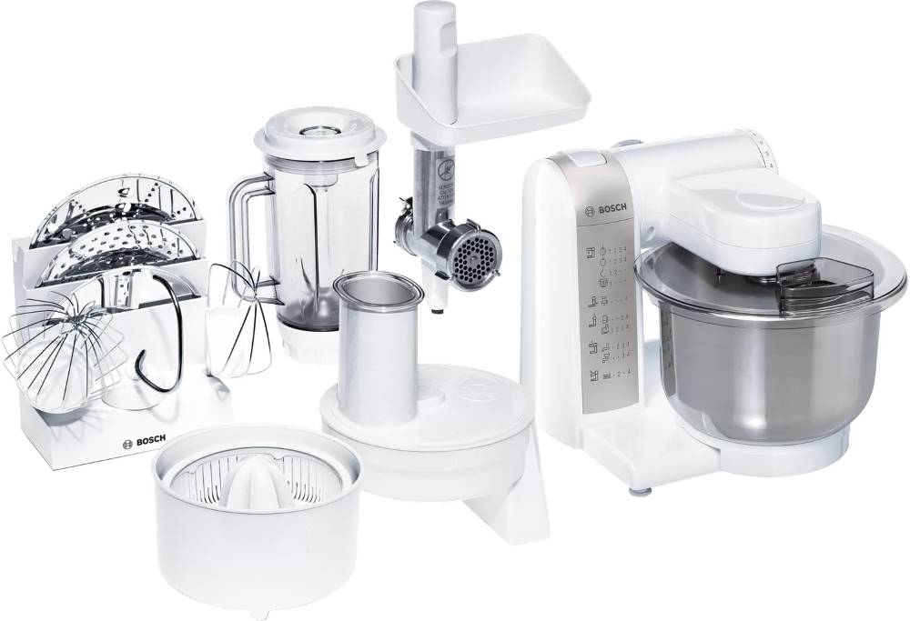 Конечно, при желании, можно дополнить прибор соковыжималкой, мясорубкой и блендером, но относительно мощности и качества обработки продуктов, он никогда не сравнится с универсальными моделями.