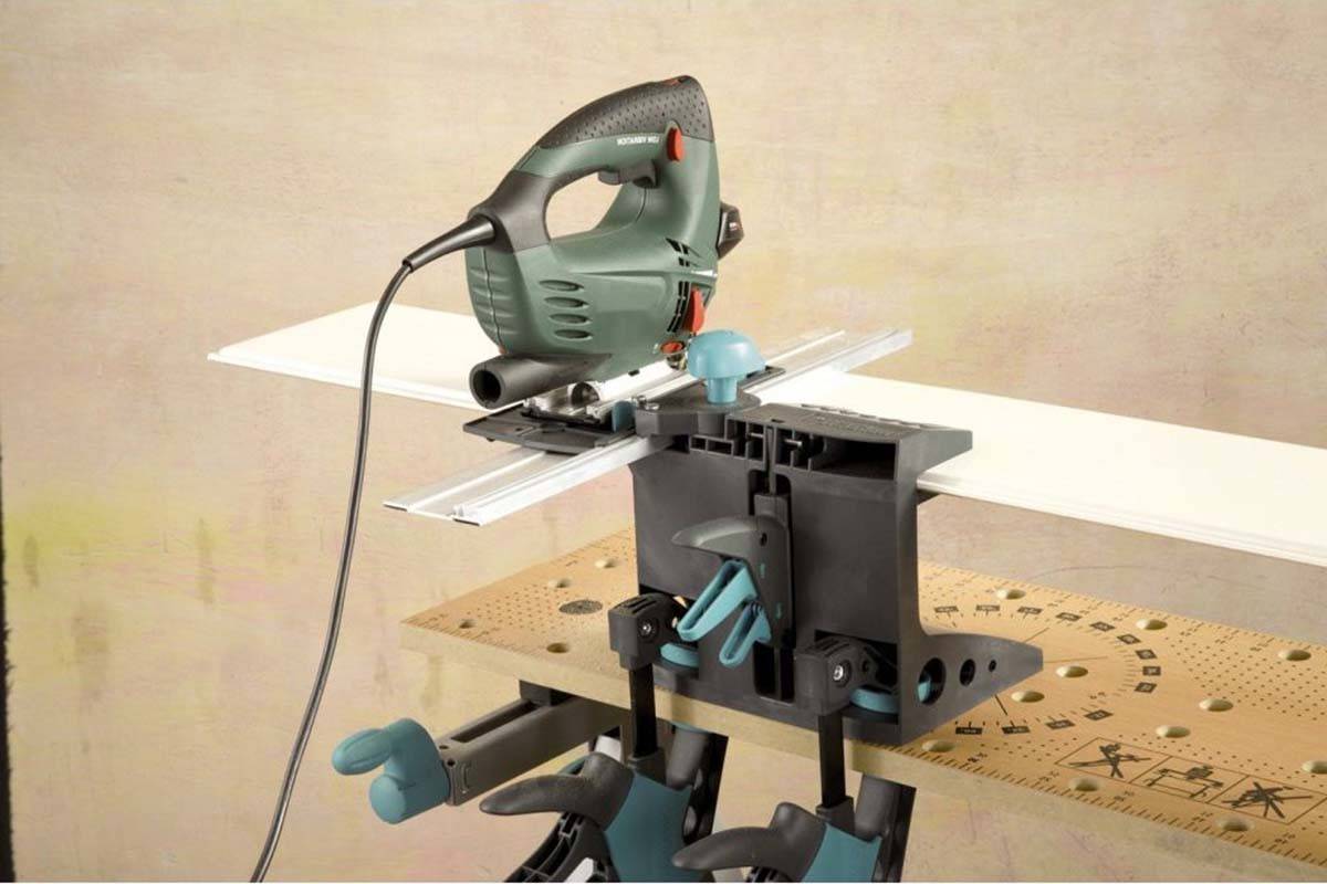 Им удобно делать длинные резы, и он просто необходим, если нужен сложный криволинейный рез. Электроинструмент работает быстро и позволяет сэкономить время и силы. Однако он создает много пыли.