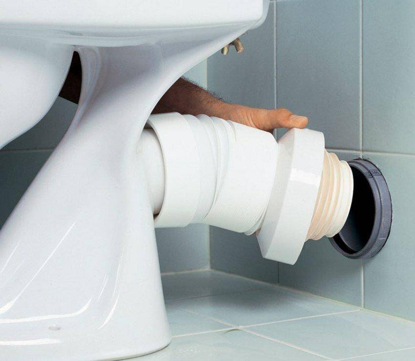 При небольшом расстоянии и установке унитаза на дюбели можно также использовать один-два переходника подходящей конструкции.