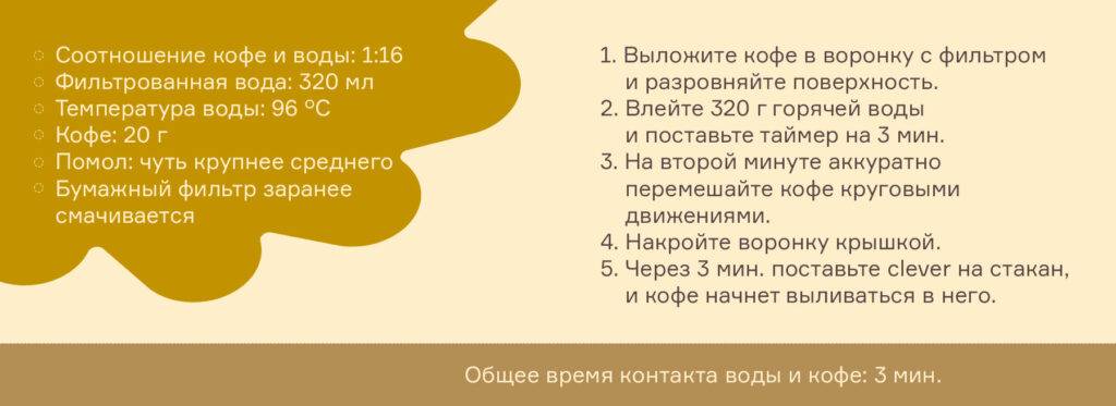 P. S. Скорость приготовления кофе в гейзере зависит от объема кофейника, используемого помола и температуры воды, которую вы заливаете, но в среднем полный цикл занимает от 3 до 6 минут. Мы проводили точные замеры времени на примере Moka Express 1168 на 2 порции с использованием фирменного кофе Bialetti (помол чуть крупнее, чем для эспрессо) и бутилированной воды комнатной температуры. Результат составил 3 минуты 50 секунд.