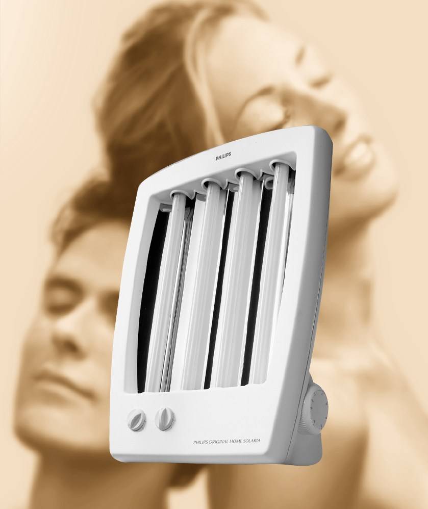 - PHILIPS HB 179/01. Предназначен для лица. Имеет 4 ультрафиолетовые лампы мощностью 75 Вт. Эксплуатационный срок до 500 часов. Возможность настройки угла наклона. В комплект входит две пары специальных очков.