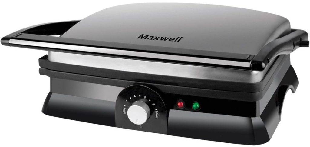 - Maxwell MW-1960ST. Аппарат, который прекрасно адаптирован для использования в домашних условиях. Цена устройства настолько не высока, что о критике и речи быть не может. К позитивным качествам можно отнести приемлемую мощность и удобную конструкцию. Единственный момент, который можно указать, как недостаток — это некоторое неудобство в очистке. Тип прибора — контактный, настольный. Управление — механическое. Мощностью он в 2 кВт. Весом — 14 кг. Особенности: пластмассовый корпус и АПП.