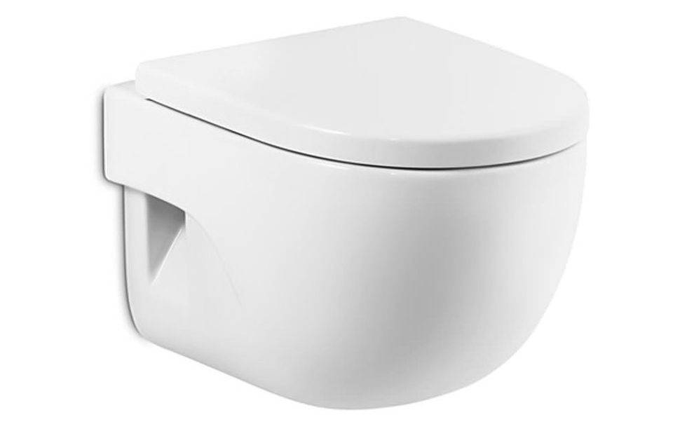 Четвертое место принадлежит модели Roca Meridian. Это самая компактная модель в рейтинге. Ее можно установить в самом небольшом санузле, но для людей с крупной комплекцией тела такая чаша может показаться неудобной. Она изготавливается из санфаянса, имеет антигрязевое покрытие, функция антивсплеск. Недостатком модели пользователи называют отсутствие крышки с сидением в комплекте. Их потребуется приобретать отдельно. Покупателям нравится закругленная форма чаши, наличие системы глубокого смывания.