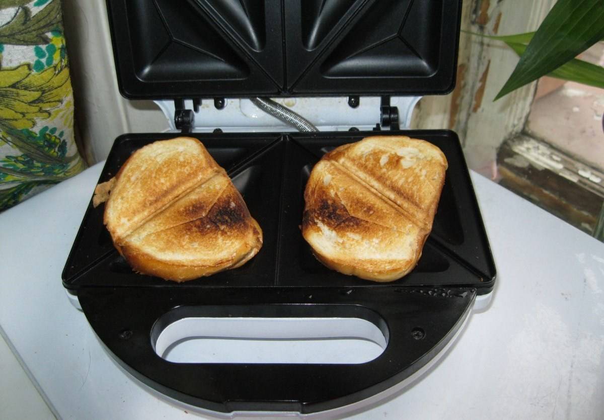 - следите за консистенцией начинки, чтобы не попадала за пределы кусочка хлеба и не загрязняла жарочную поверхность;