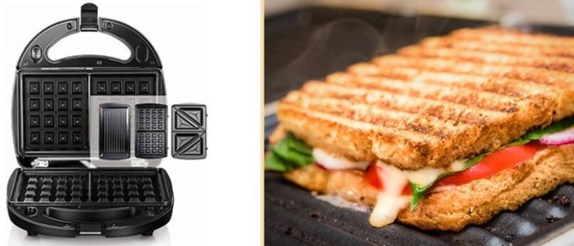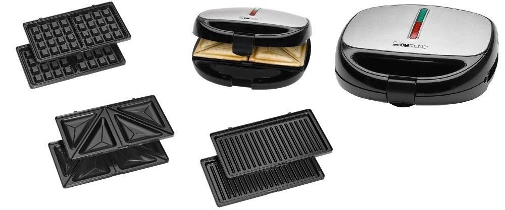 На них стоит обратить внимание в том случае, когда предполагается использовать прибор не только в приготовлении бутербродов. С подобной целью приобретайте сэндвичницу со вспомогательными съемными приспособлениями в целях жарки мяса, готовки вафель и многого другого
