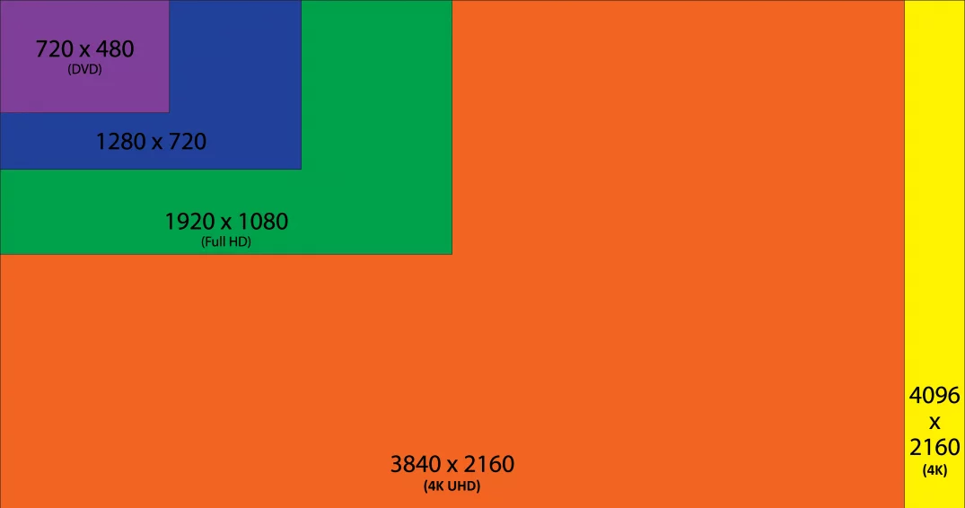 - Ultra HD или 4К – современный формат высокого качества (4096 на 2160 или 3840 на 2160 пикселей). Он может быть только у телевизоров, чья диагональ выше 32 дюймов. Помимо телевизора, такое качество контента должен вещать источник сигнала. Чаще всего это новые проигрыватели, смарт-консоли или Смарт ТВ.