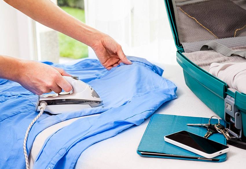 - Ускоренная сушка. С помощью маленького утюга в дороге можно быстрее просушить влажную одежду.