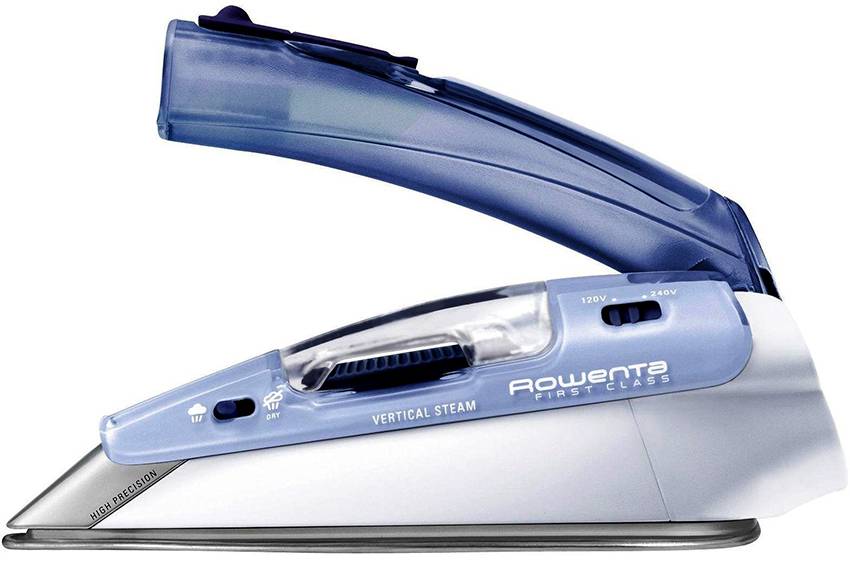 Rowenta DA 1510. Несмотря на скромные габариты, подошва прибора оснащена 200 отверстиями для пара, что превращает прибор в переносной отпариватель. Мощность модели – 1000 Вт, а мощность парового удара достигает 45 г/мин. Из достоинств также можно выделить длинный шнур и наличие в комплекте чехла для хранения. Желоб для удобной утюжки мест между пуговицами повышает маневренность устройства. Наличие большого количества преимуществ определяет и то, сколько стоит утюг: средняя цена в магазине – 2,1 тыс. рублей.