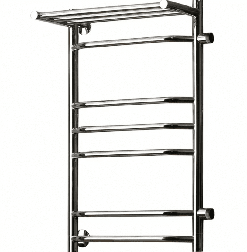Прибор оригинальной формы из нержавейки оснащен 6 секциями. По габаритам он меньше предыдущей модели, но рассчитан на отопление 2,6 м2. Водяной полотенцесушитель с боковым подключением выдерживает давление около 15-25 атм. Уровень нагрева теплоносителя на 5 градусов выше, чем у Terminus ВегаП5 575×606. Допустимо подключение к системе центрального отопления и горячего водоснабжения.