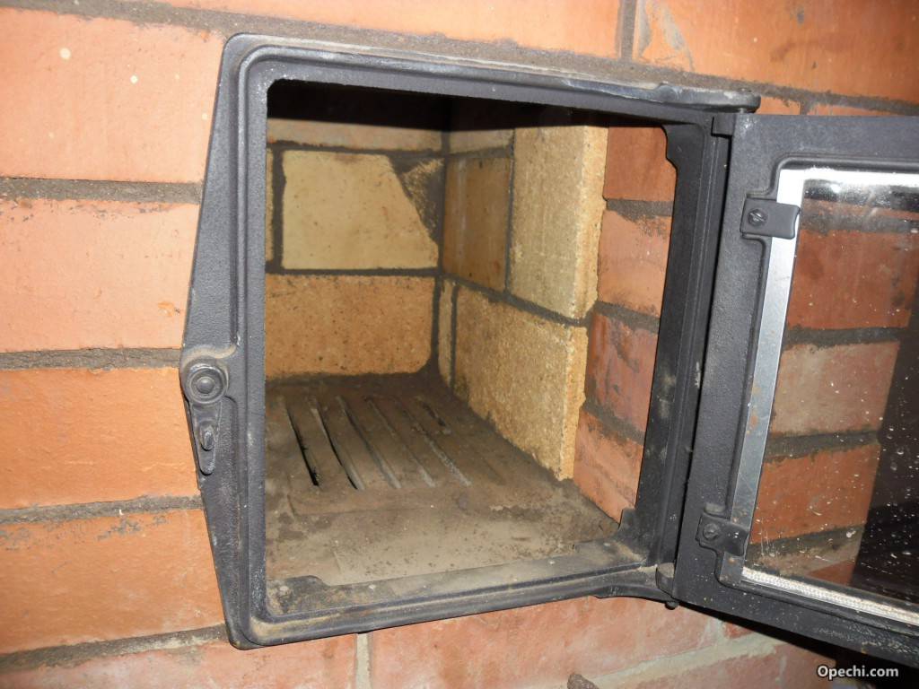 - На всех этапах монтажа металлической фурнитуры, учитывайте зазор на тепловое расширение. Колосниковую решетку кладите не на раствор а в бороздки кирпичей. Она должна свободно сниматься и доставаться из печи.