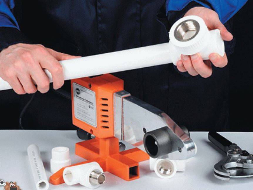 Паяльник необходим, чтобы прогреть торцы собираемых элементов трубопровода. Аппарат, как правило, комплектуется набором насадок, дающих возможность монтировать трубы различных сечений. Инструмент включает в себя два основных элемента: