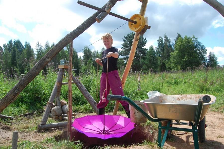 - Веревки и блок (для подъема на поверхность ведер с грунтом).