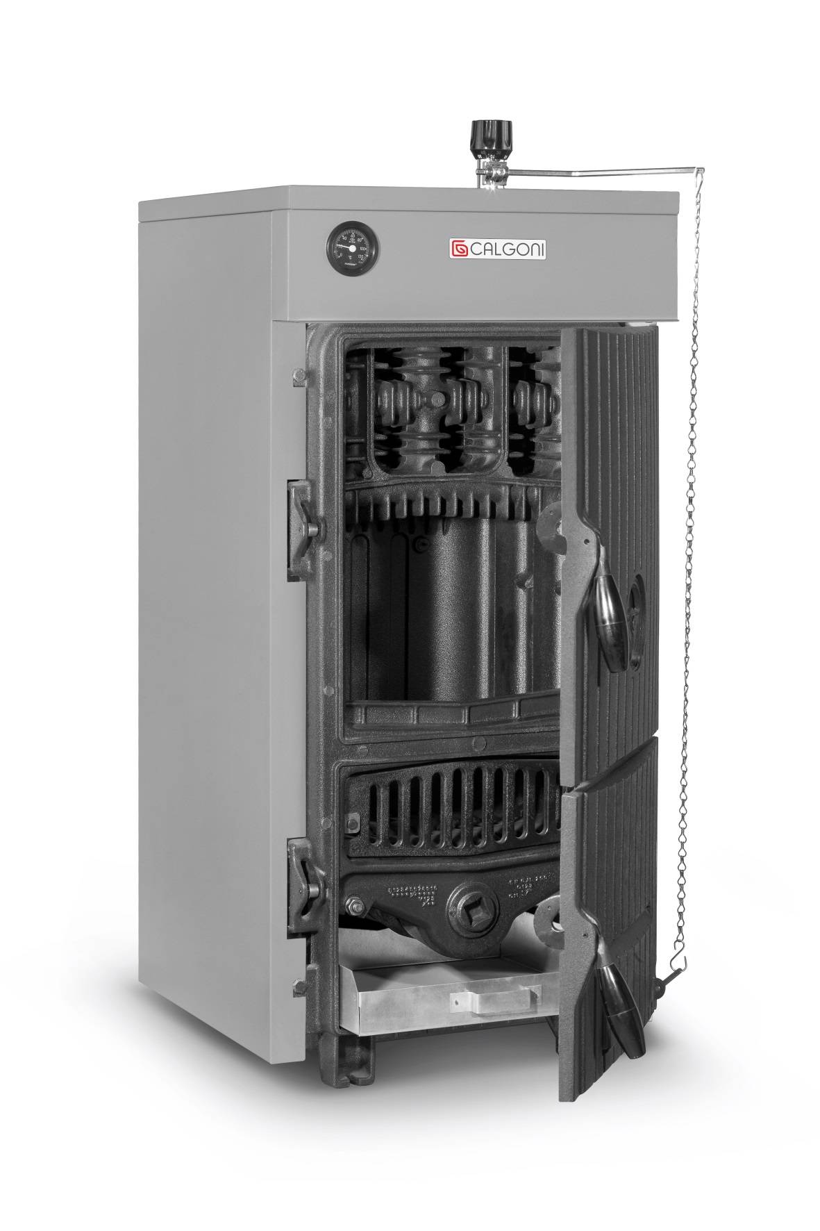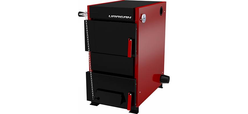 Классический твердотопливный котел, работающий на дровах и угле.
